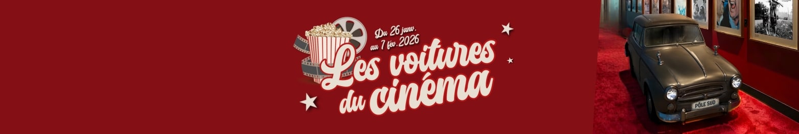Revivez la magie du grand écran à travers des véhicules devenus cultes : la Peugeot 403 de Columbo, le camion Citroën de La Grande Vadrouille, la mythique 2CV du Le Corniaud, la Ford T de Laurel et Hardy, la Honda de Pulp Fiction… et bien d’autres encore !